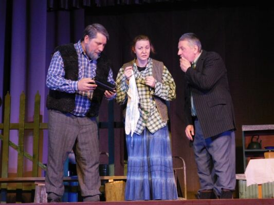 В спектакле заняты актеры народного театра Денис Гассан в роли Василя, Владислав Андрианов в роли Микиты и Елена Мацепуро в роли Ганны. Это простая история о трех стариках, которая заставляет смеяться и плакать одновременно. Их дети разъехались и забыли о них. А старики доживают свою жизнь. Они вспоминают о своей жизни, она у каждого была непростая. И вот сейчас – их вечер жизни.