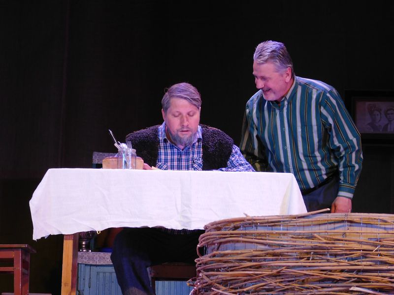 В спектакле заняты актеры народного театра Денис Гассан в роли Василя, Владислав Андрианов в роли Микиты и Елена Мацепуро в роли Ганны. Это простая история о трех стариках, которая заставляет смеяться и плакать одновременно. Их дети разъехались и забыли о них. А старики доживают свою жизнь. Они вспоминают о своей жизни, она у каждого была непростая. И вот сейчас – их вечер жизни.