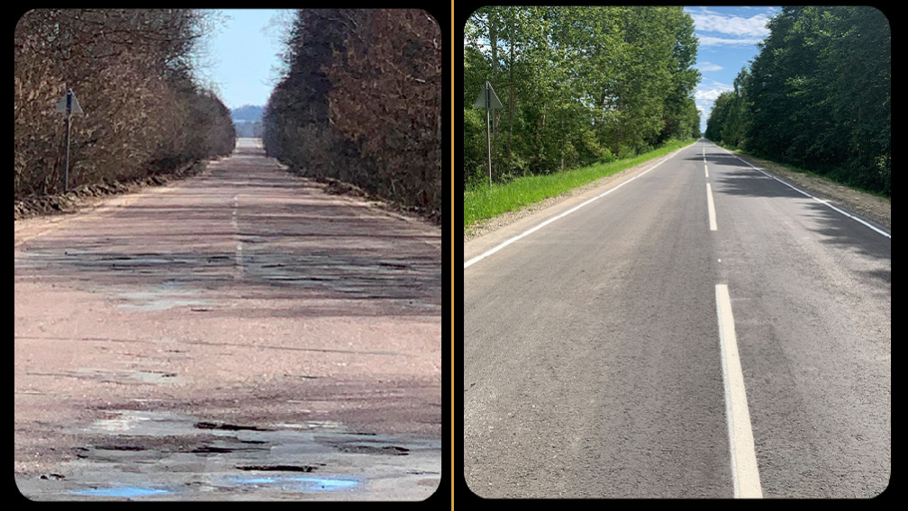 Протяженность участка составила 2 километра. Здесь заменили асфальтобетонное покрытие, укрепили обочины. Отремонтировали остановочные и посадочные площадки, водопропускную трубу.