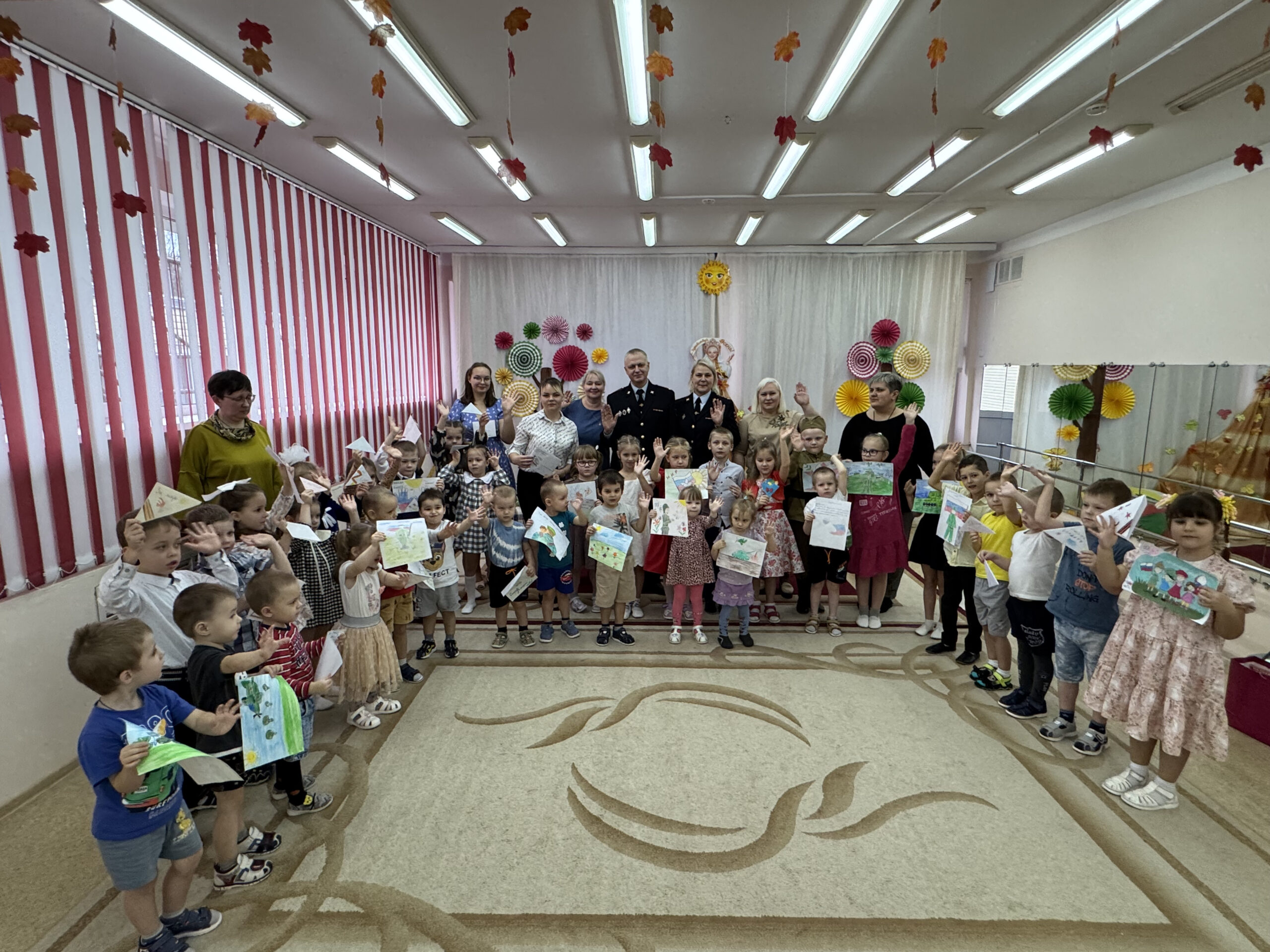 Стражи правопорядка выразили благодарность коллективу детского сада за радушный приём и участие в акции, наградили воспитателей почетными грамотами, а деток раскрасками, прописями и фломастерами.