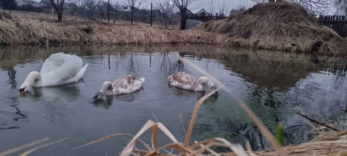 Несколько подряд стародубский фермер Сергей Мамеев заботится о птицах, которые по разным причинам не улетели в тёплые края. Сейчас в его хозяйстве живут лебеди. Заботливый хозяин знает предпочтения в еде своих подопечных и кормит их полезной едой. Лебеди плавают в небольшом пруду, который не покрыт льдом. На днях здесь высплыла ряска, которую обожают пернатые.
