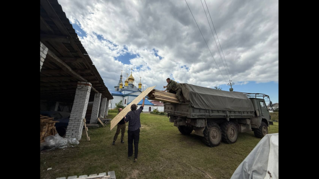 Протоиерей Димитрий Снегирев доставил стройматериалы и продукты.