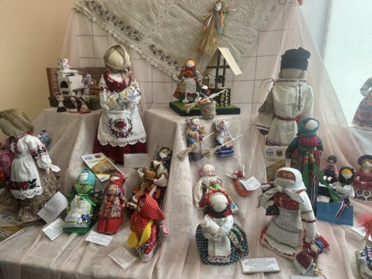 На выставке представлены куклы в национальных костюмах, обереговые, игровые, тильды, вязанные крючком, из капрона, бумаги, глины, соломы и других материалов, а также современные текстильные куклы.