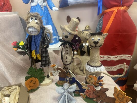 На экспозиции представлены работы обучающихся школ, студий, клубов, педагогов, художников и мастеров декоративно-прикладного искусства города, занимающиеся изготовлением кукол в различных техниках и из различных материалов.