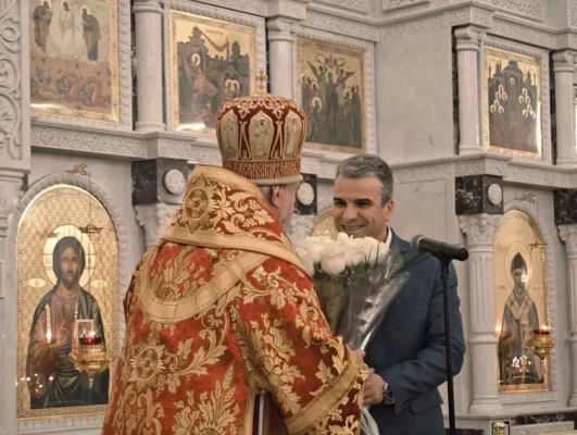 От имени губернатора Брянской области Александра Богомаза главу Клинцовской епархии с великим праздником Пасхи Христовой поздравил заместитель губернатора Виталий Свинцов. Он зачитал поздравительный адрес и преподнес в дар букет белых роз, символизирующих чистоту. На память о великом празднике Епископ Клинцовский и Трубчевский Владимир преподнес в ответ, следуя православной традиции, Виталию Александровичу пасхальное яйцо — знак новой жизни и воскресения.