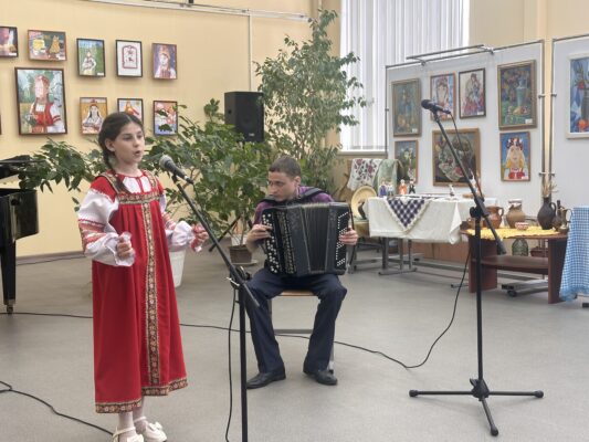 Она приурочена Году единства народов России. На экспозиции представлено около 145 работ. Праздничное настроение гостям мероприятия подарили участники фольклорного ансамбля «Млада». Руководитель Светлана Нечаева прививает учащимся музыкального отделения любовь к традициям нашего народа.